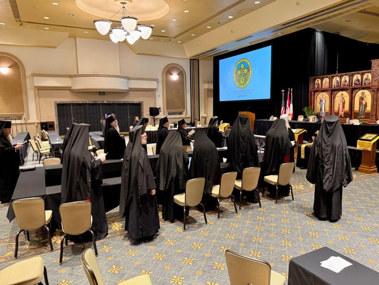 Here is a photo from the All American Council. Bishop – elect Archimandrite Vasily is pictured at the far right facing sideways toward the hierarchs. Here are the reports from the council. Read more here: Holy Synod Elects Archimandrite Vasily as Bishop Elect of the West